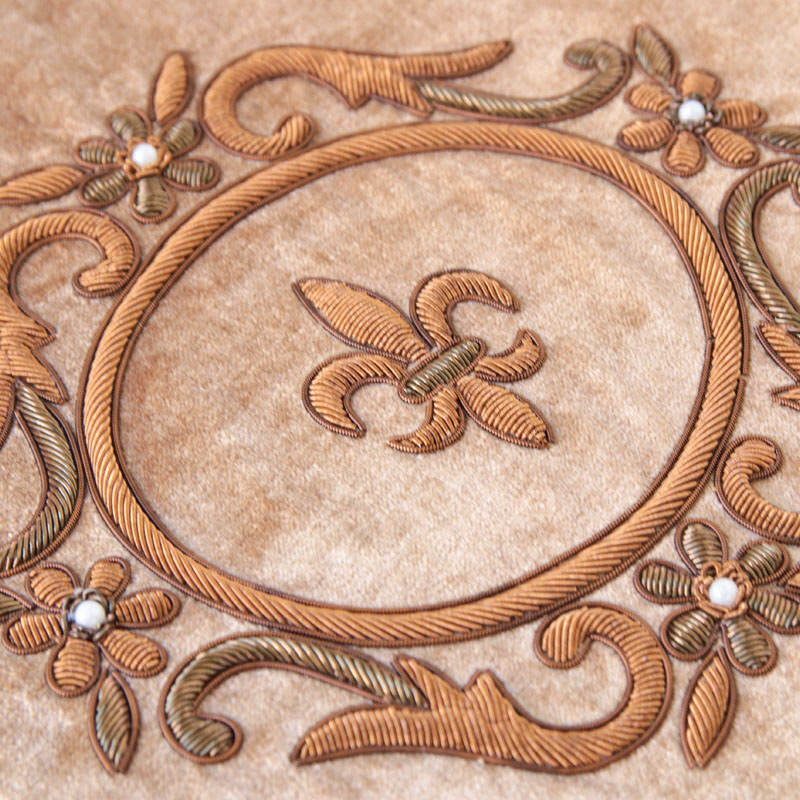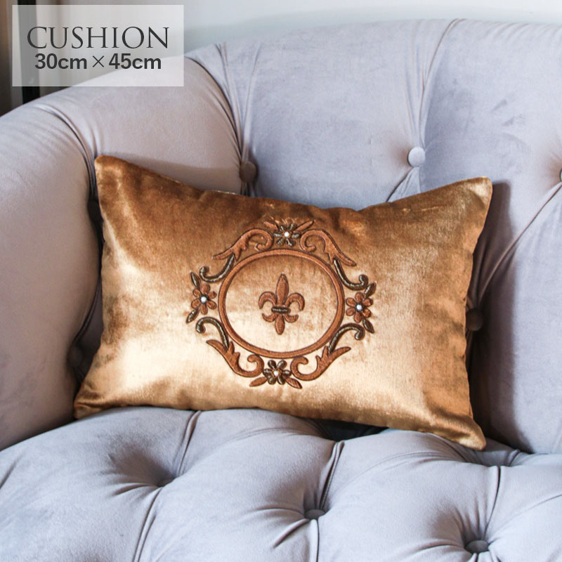 ビーズ 刺繍デザインクッションカバー ゴールドリリー La deco