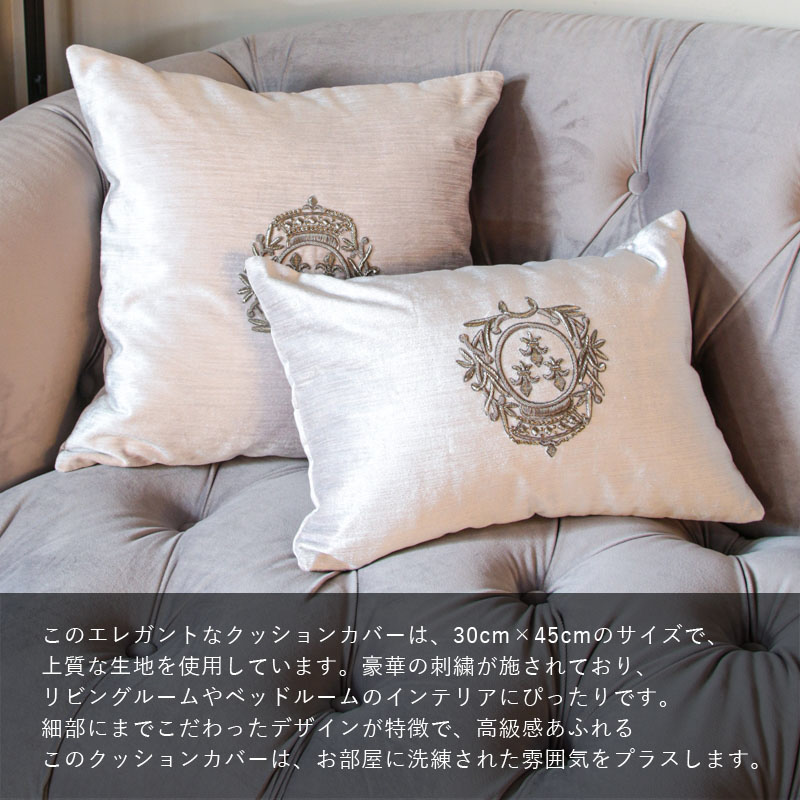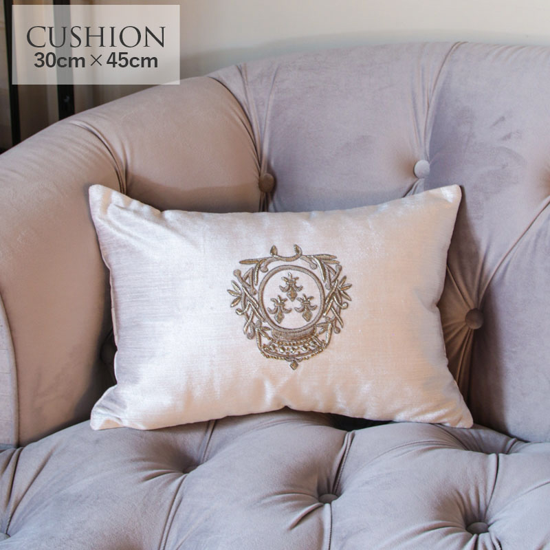 ビーズ 刺繍デザインクッションカバー バッヂ La deco