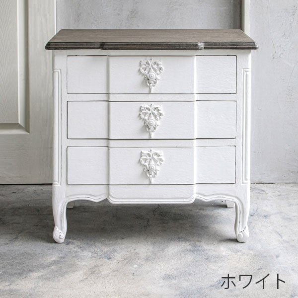 引出し3杯のフレンチチェスト、取手はおしゃれなデザイン取手に