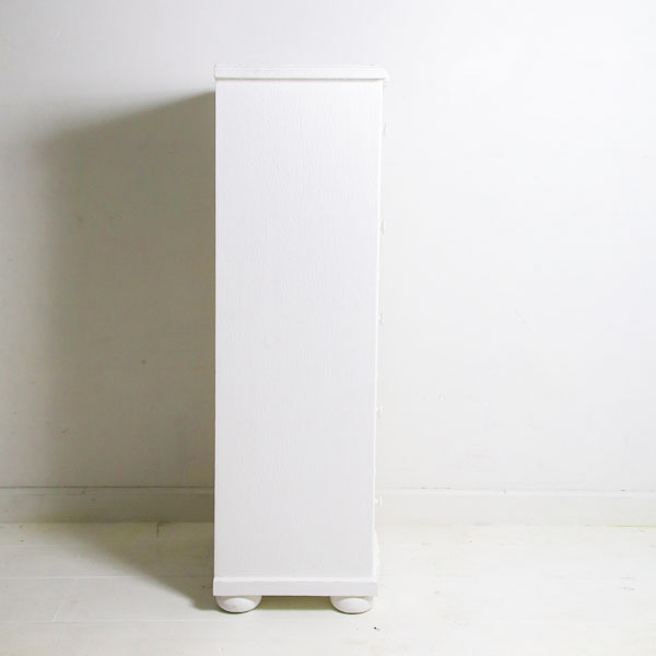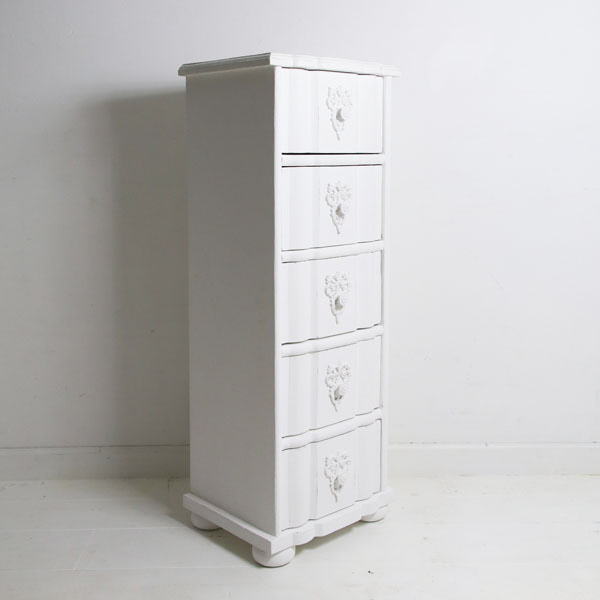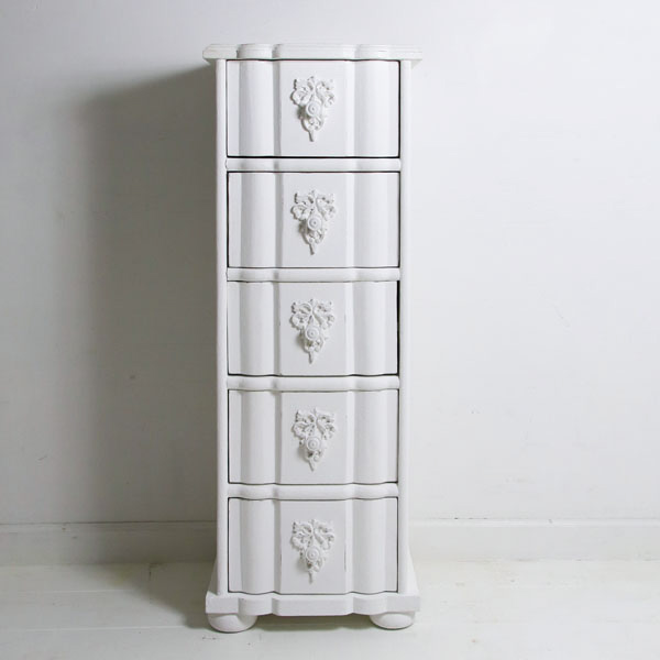 幅の狭い5段チェスト、前面はフレンチらしい曲線シェイプ