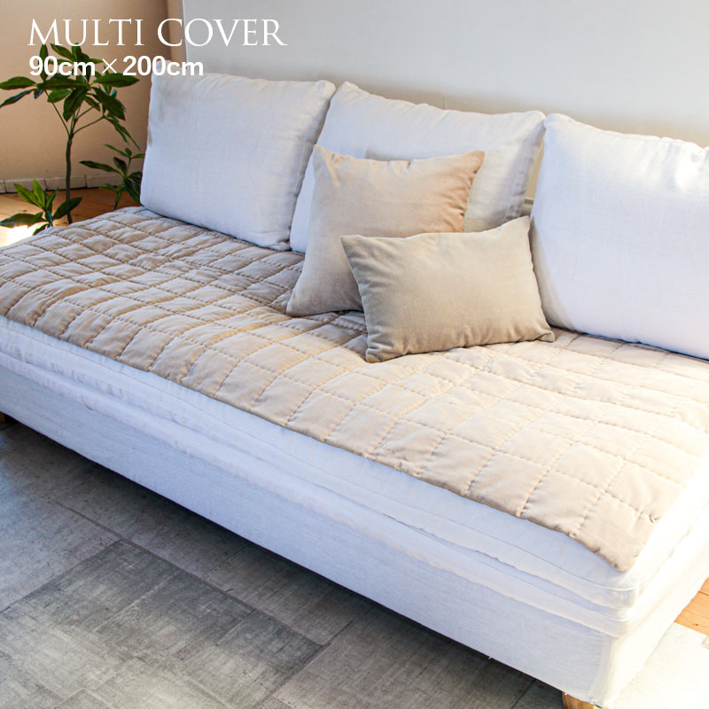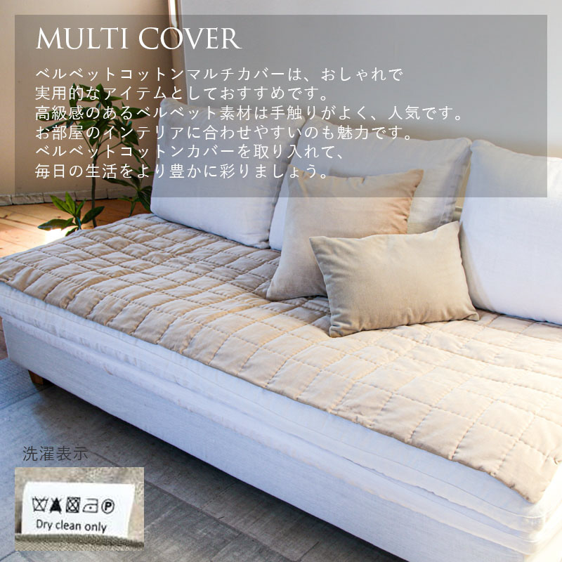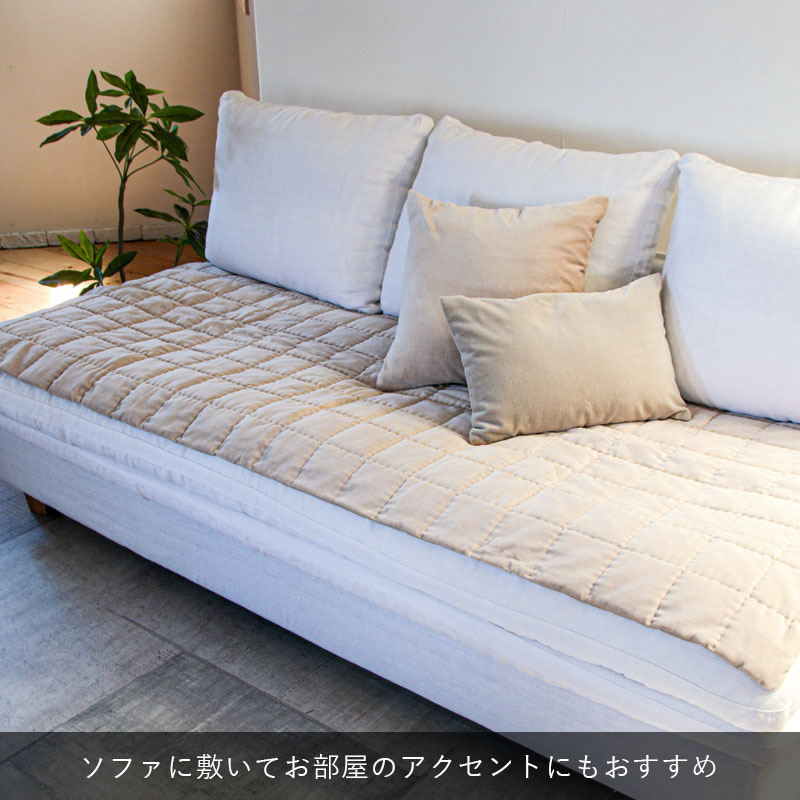Sofa Throw マルチカバー コットンベルベット リバーシブル ベージュ La deco