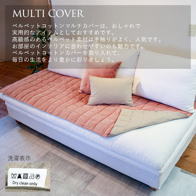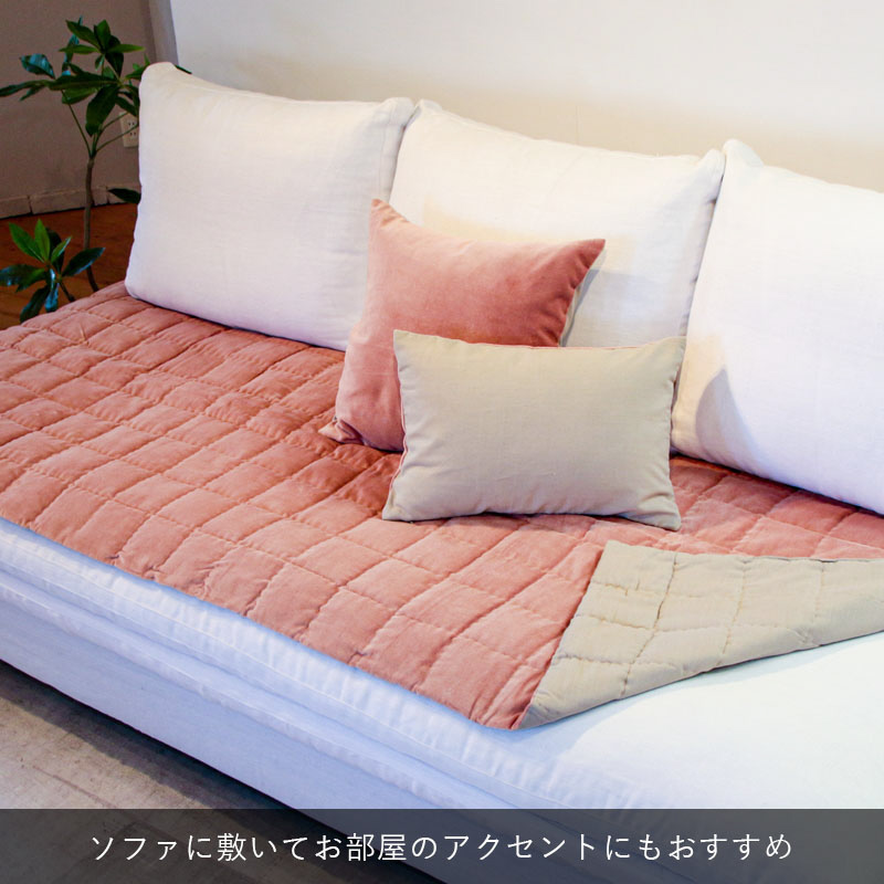 Sofa Throw マルチカバー コットンベルベット リバーシブル ローズピンク La deco