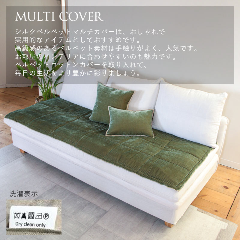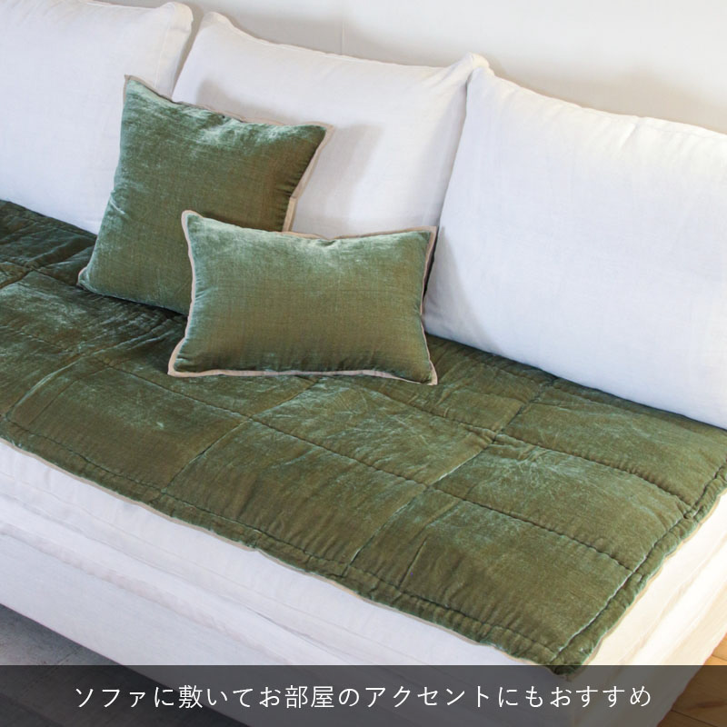 Sofa Throw マルチカバー シルクベルベット リバーシブル セラドングリーン La deco