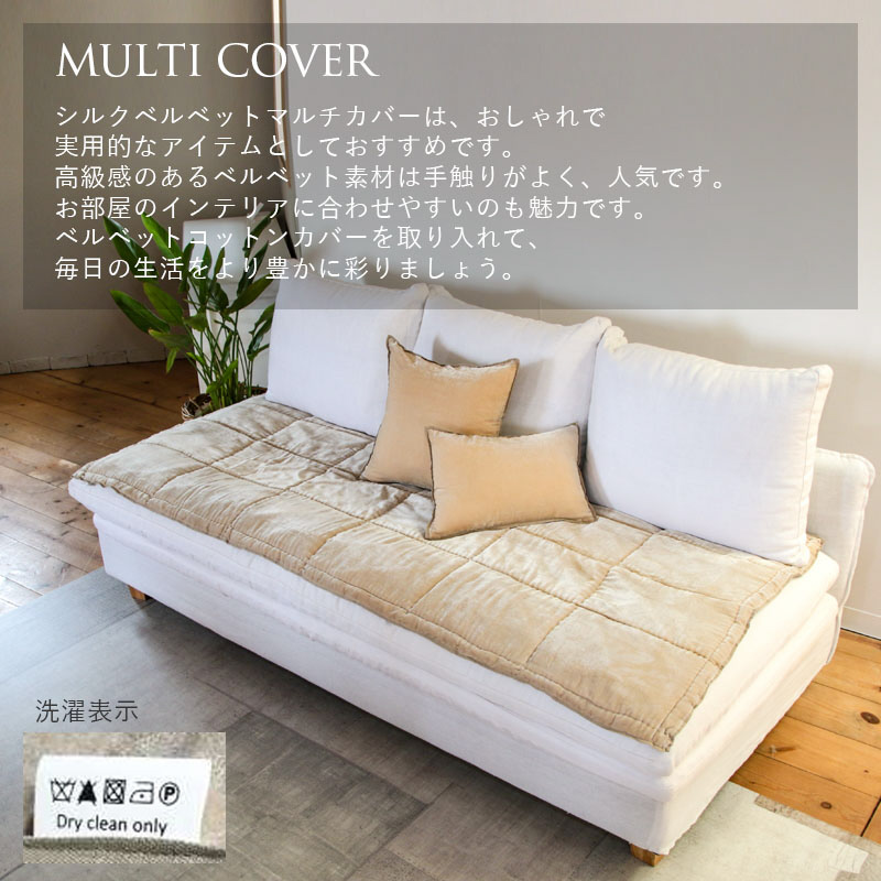 Sofa Throw マルチカバー シルクベルベット リバーシブル ベージュ La deco
