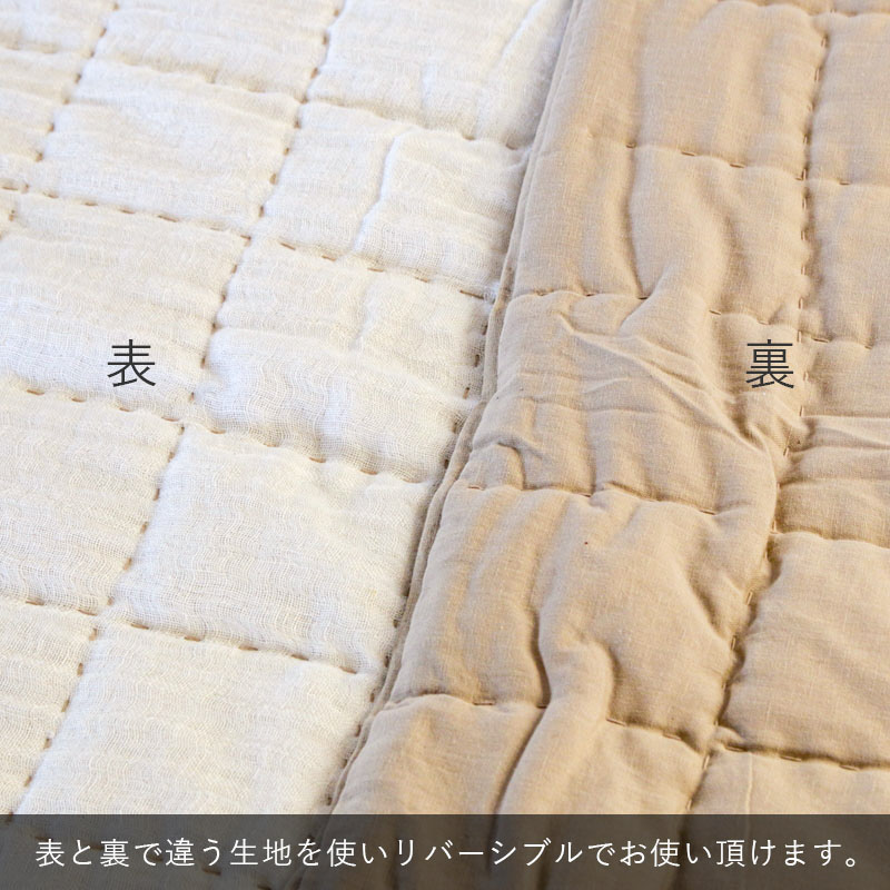 表面にリネン、裏面にコットンを使ったリバーシブルタイプのマルチカバー