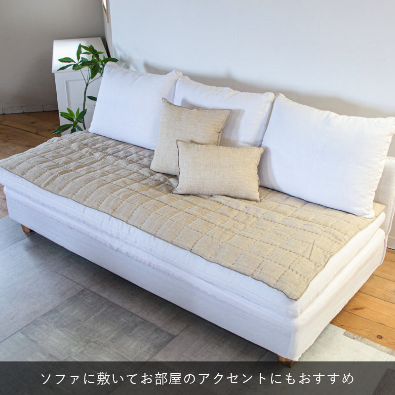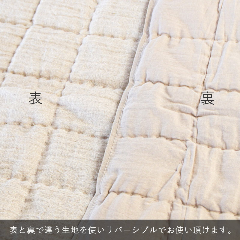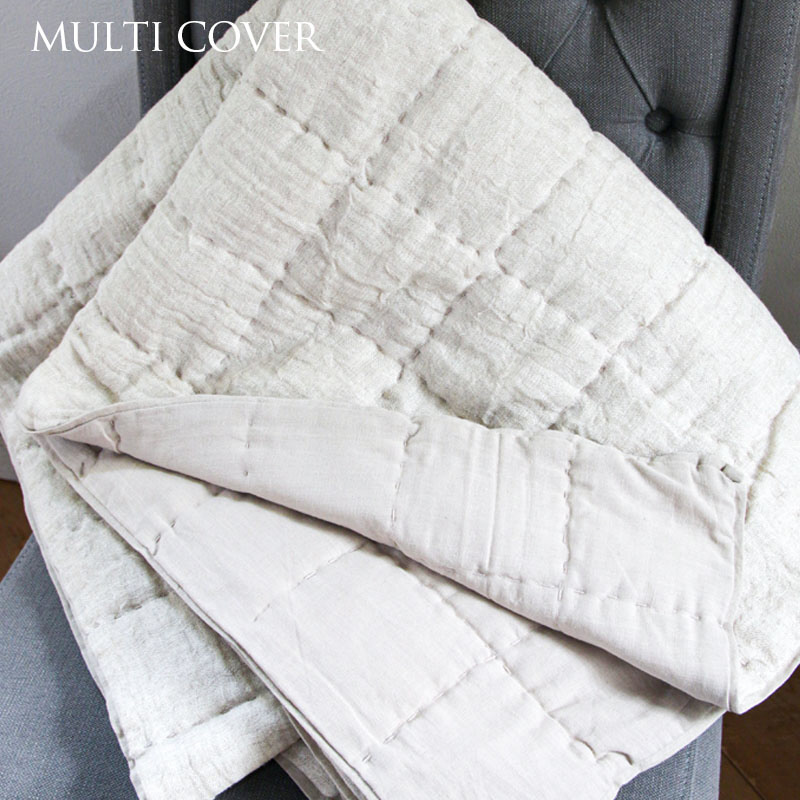 表面にリネン、裏面にコットンを使ったリバーシブルタイプのマルチカバー