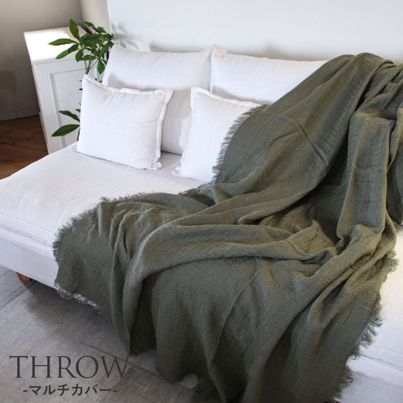 マルチカバー THROW ソファカバー ベッドカバー スロー フレンチ LICHEN色 La deco