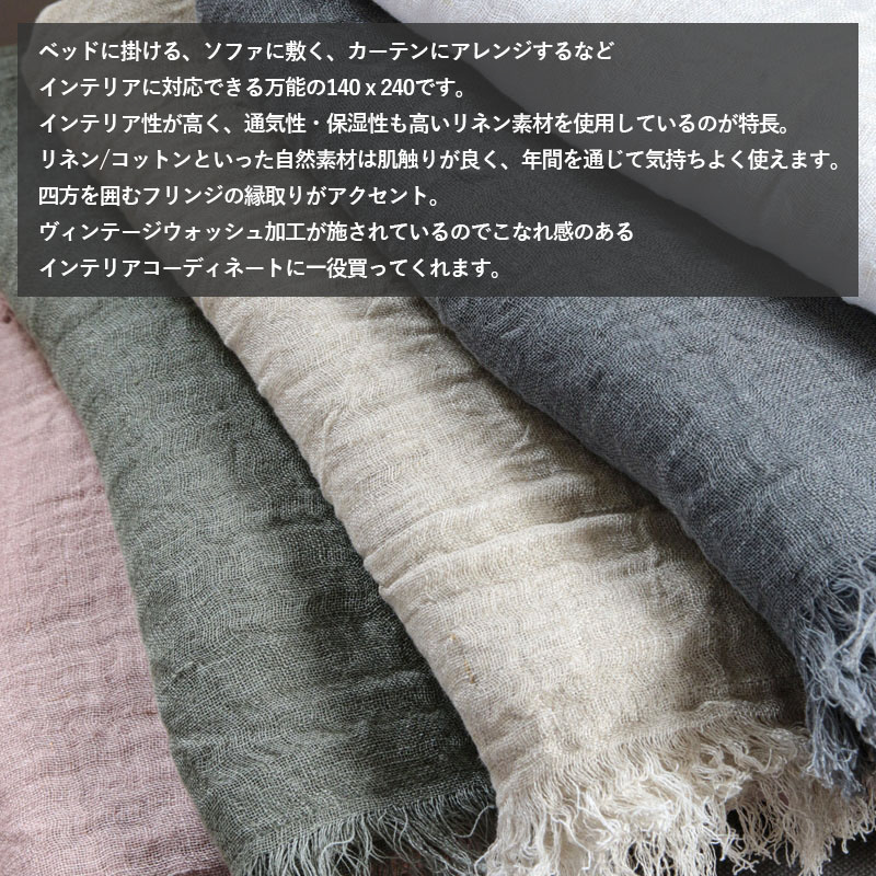 100%自然素材のマルチカバー、ヴィンテージウォッシュ加工を施しているので一段と気持ちいい肌触りになっています