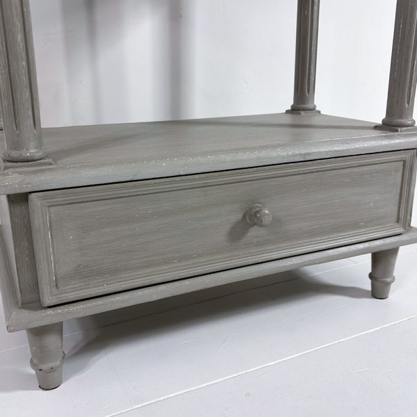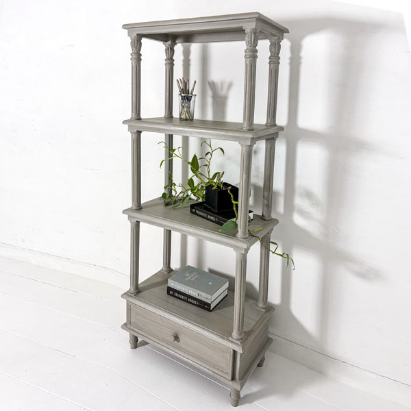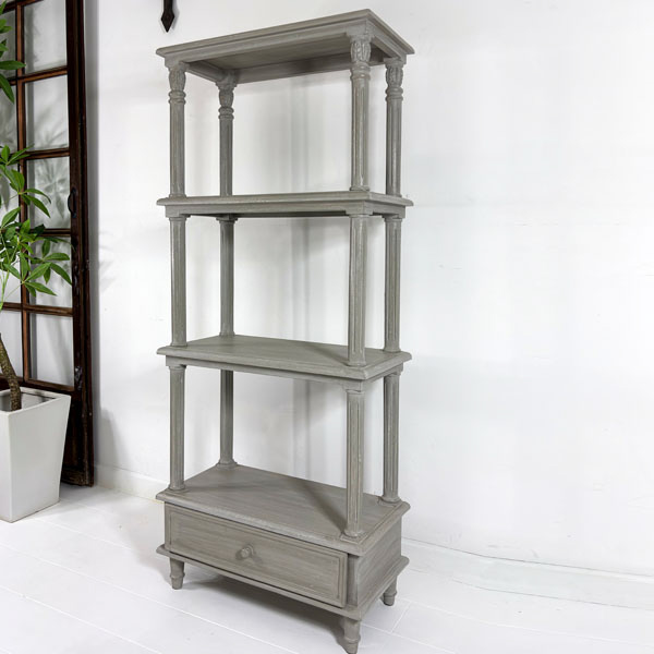コンパクトなブックシェルフ、高さはほどよい145cmで引出しが1杯ついています