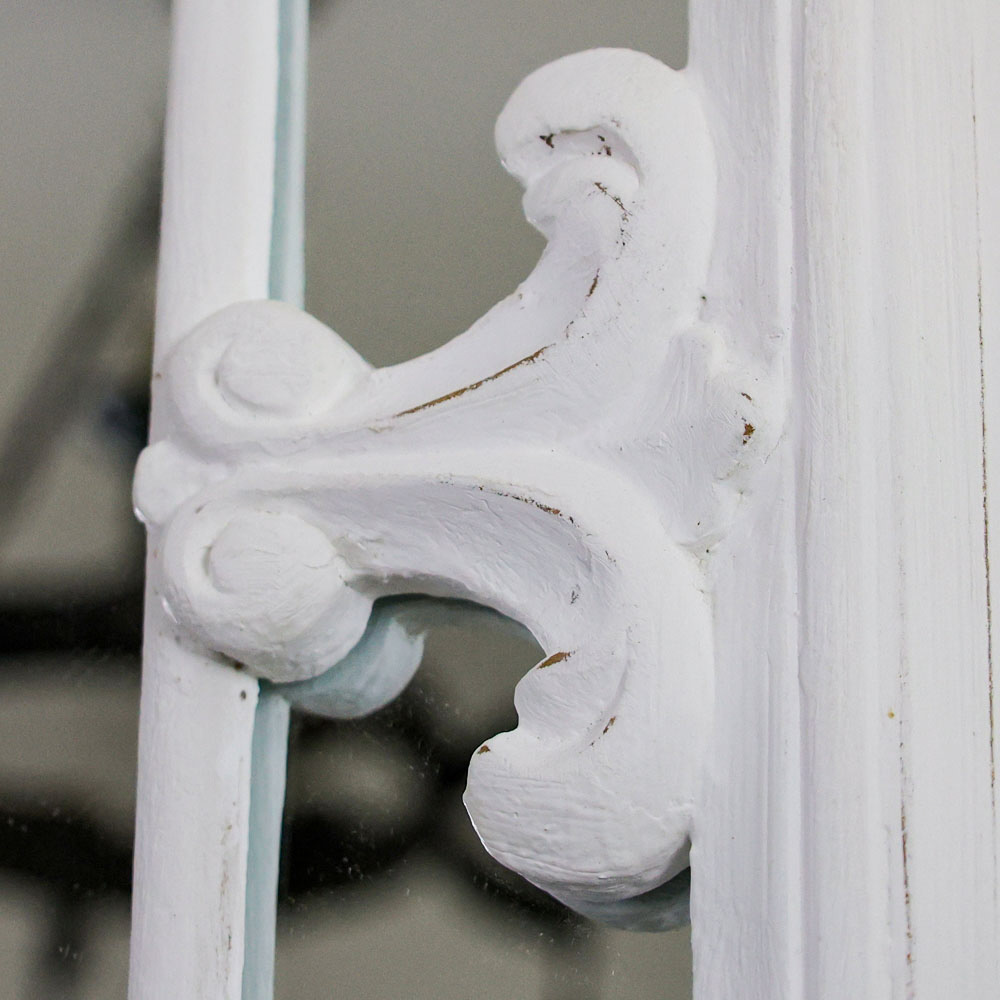 可憐な装飾が施されたフレンチミラー、チェストと組み合わせても素敵です