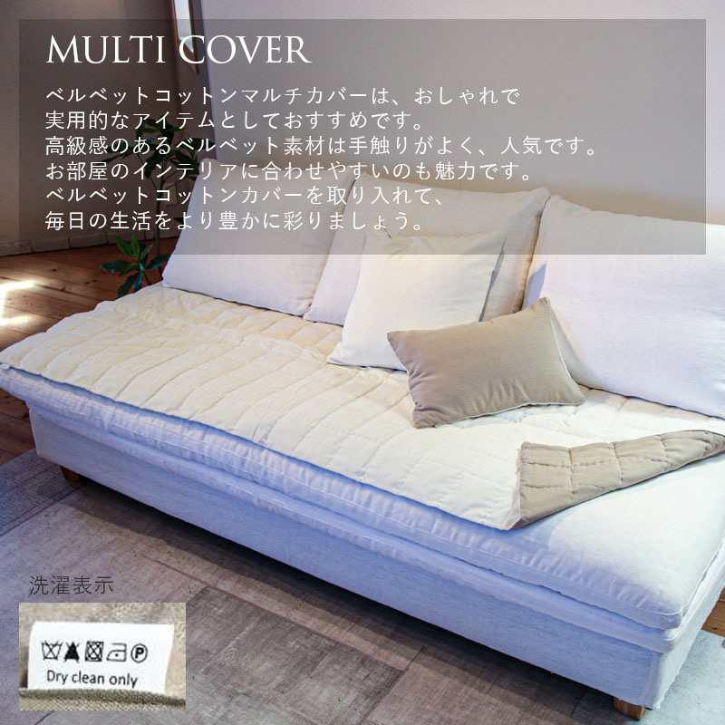 Sofa Throw マルチカバー コットンベルベット リバーシブル エクリュ La deco