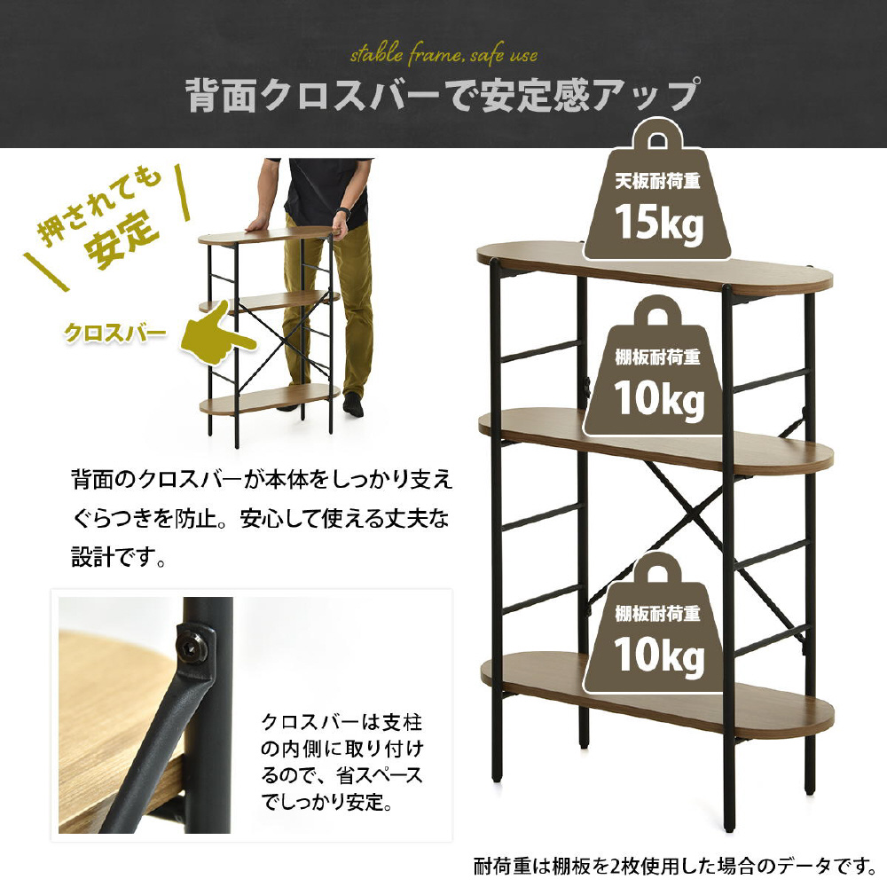背面のクロスバーが本来をしっかり支えてぐらつき防止。安心して使える丈夫な設計です。