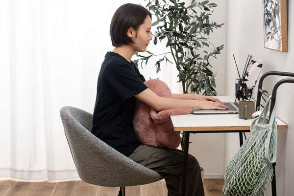 デスク作業の際にデスクとお腹の隙間に挟むことで自然と背筋が伸びやすくなり、猫背姿勢を防止してくれます。正しい姿勢を保つことで、肩こりや腰痛の対策にもなります。