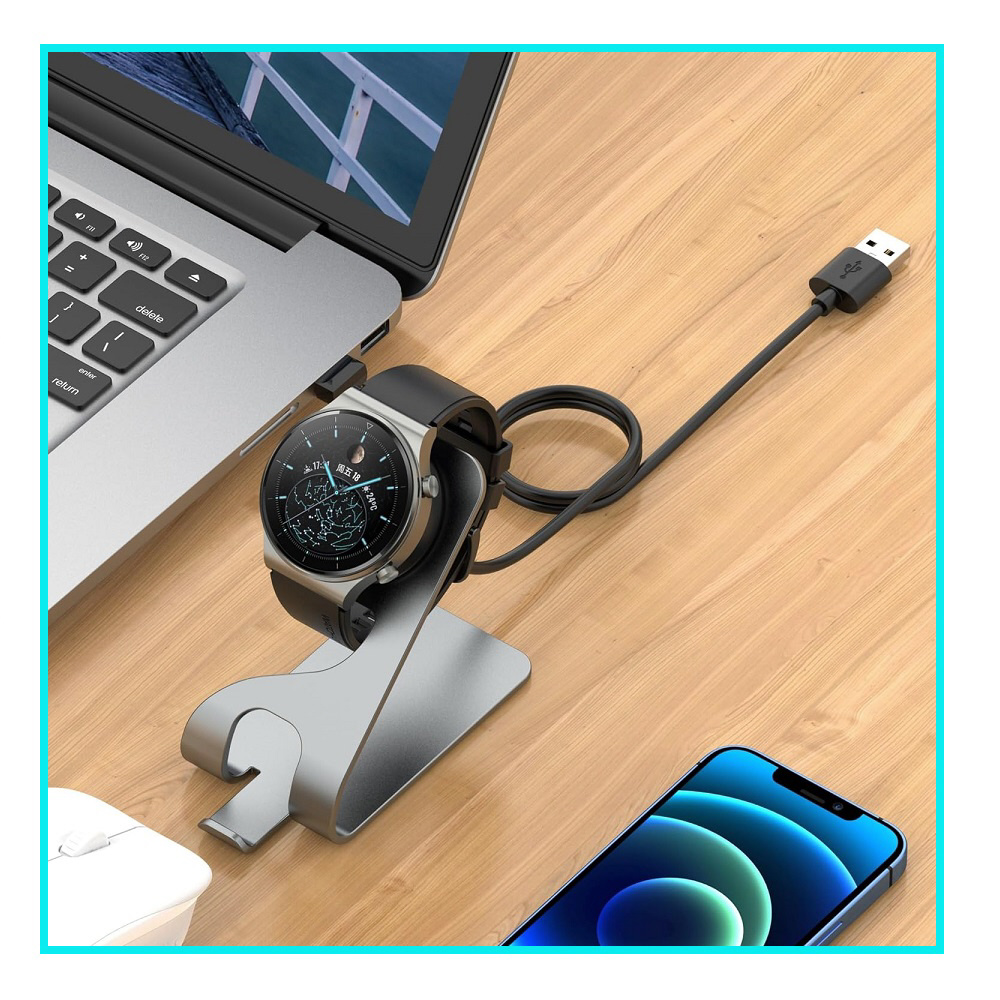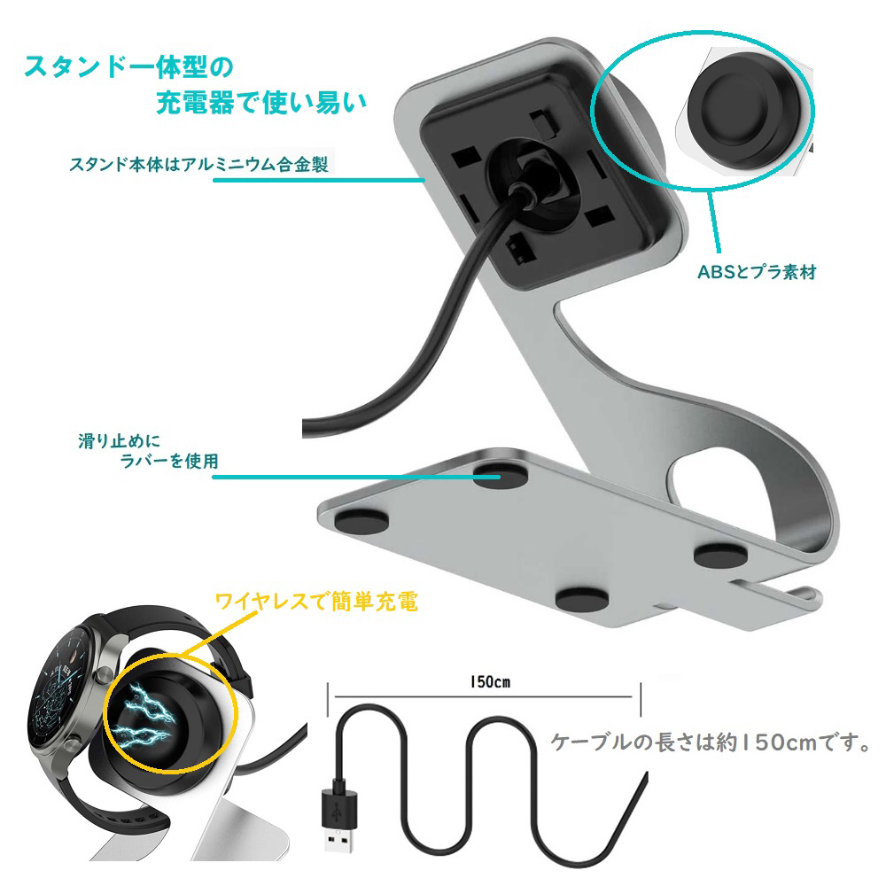 Huawei用 スマートウォッチ充電器スタンド(充電ケーブル付き) シルバー