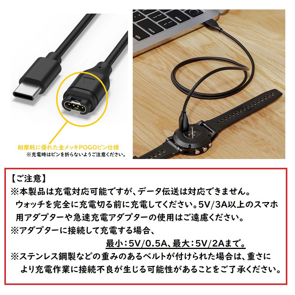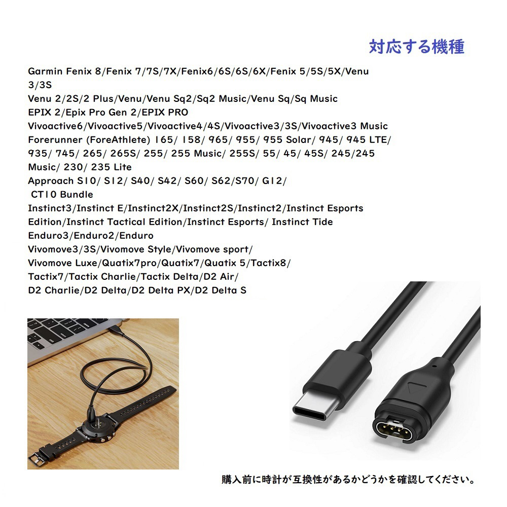 Garmin用スマートウォッチ充電ケーブル 1.0m(USB TYPE-C)