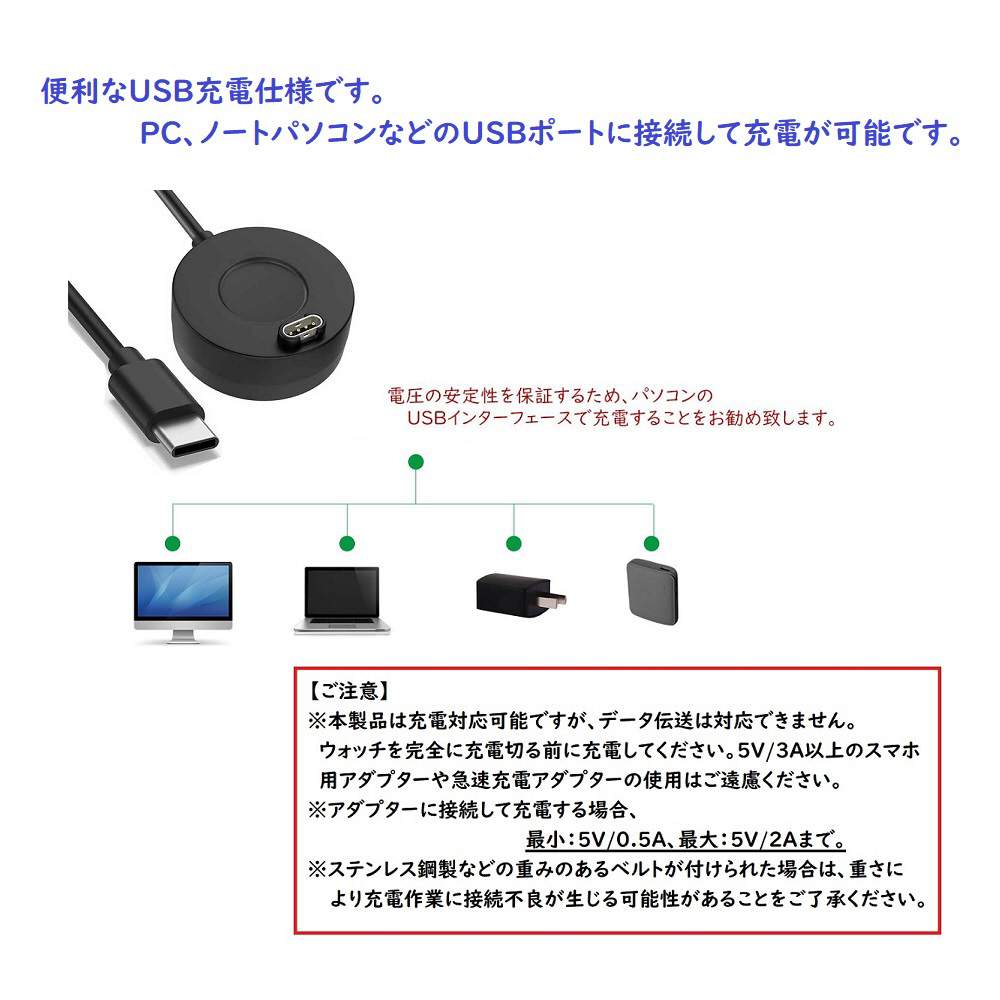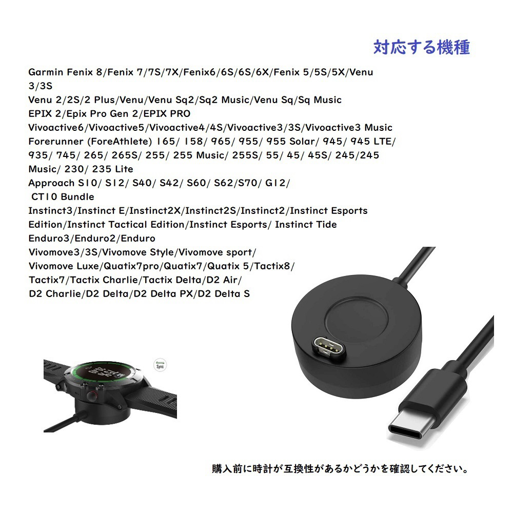Garmin用スマートウォッチ充電パッド付きケーブル 1.0m(USB TYPE-C)