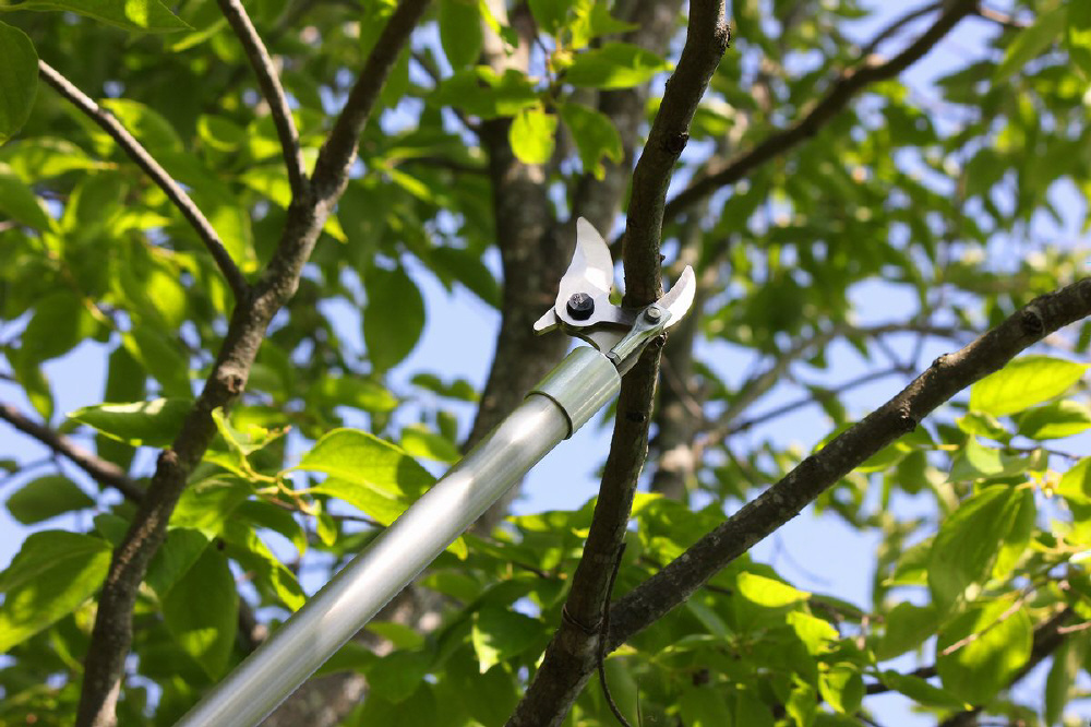太枝がザクっと切れるどこでも快適なコードレス高枝鋏です。