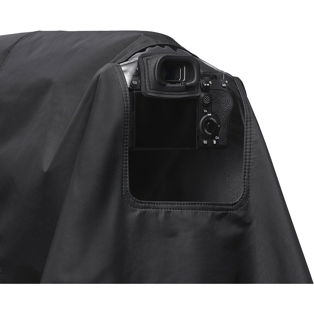 ・    防滴で透湿度の高い素材(20,000 g/m2/24h)※により、長時間の撮影においても蒸れが少なく悪天候下でも安心で快適な撮影をサポート