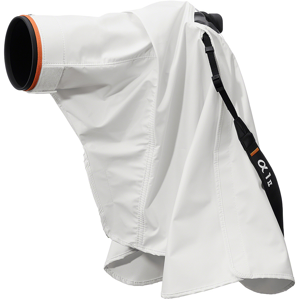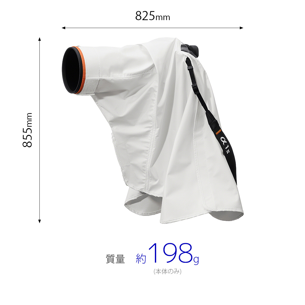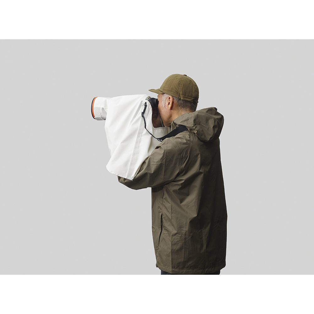 ・    面ファスナー機構により防滴、耐風性能を損なわず降雨・降雪時に容易にカメラおよびレンズに脱着でき、機材を保護しながらの撮影が可能