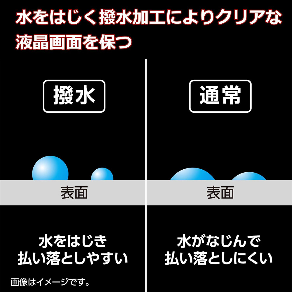撥水加工によりフィルム上に付いた水滴を簡単に払い落とせるため、クリアな液晶画面を保つことができます。