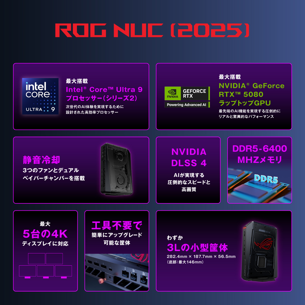 RNUC15JNK9X289AJ ゲーミングデスクトップパソコン ROG NUC (2025) Black