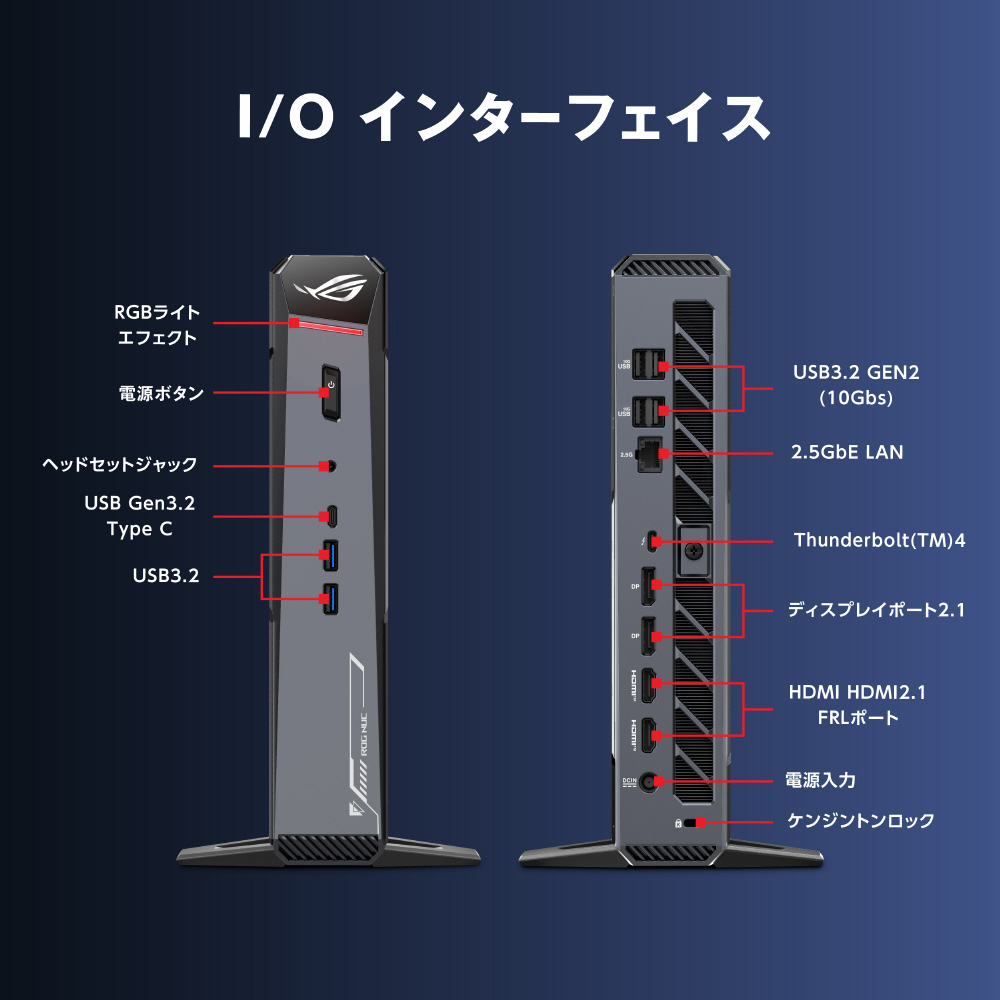正面:USB Gen 3.2 Type C×1、USB 3.2×2 背面:HDMI×2、DisplayPort×2、Thunderbolt 4×1、USB 3.2 Gen 2 (10Gbps)×4