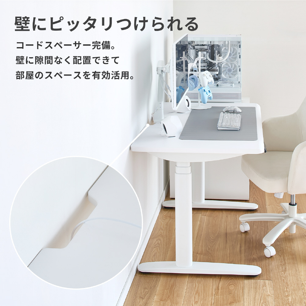 コードスペーサーを標準装備で、壁に隙間なく配置できて部屋のスペースを有効活用。
