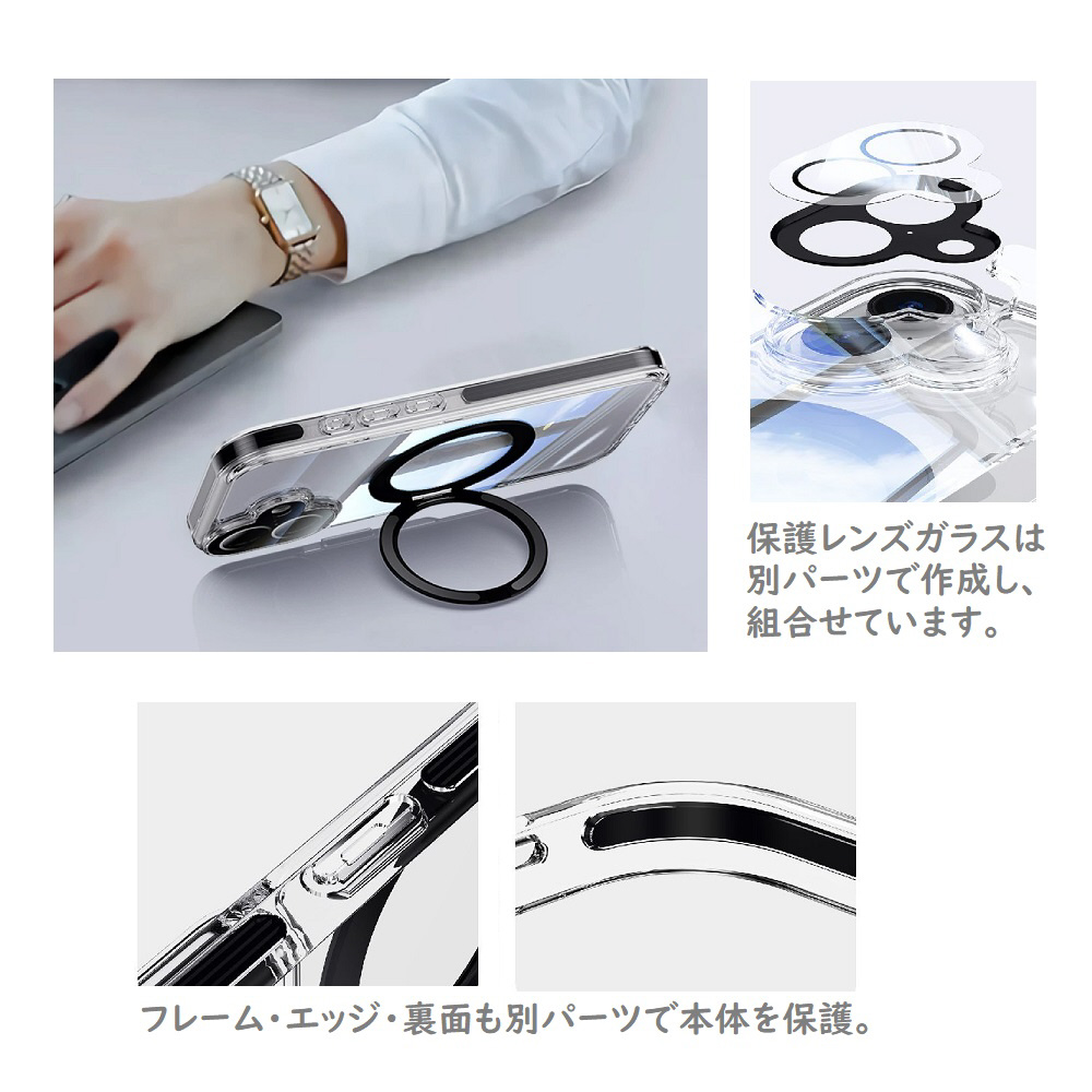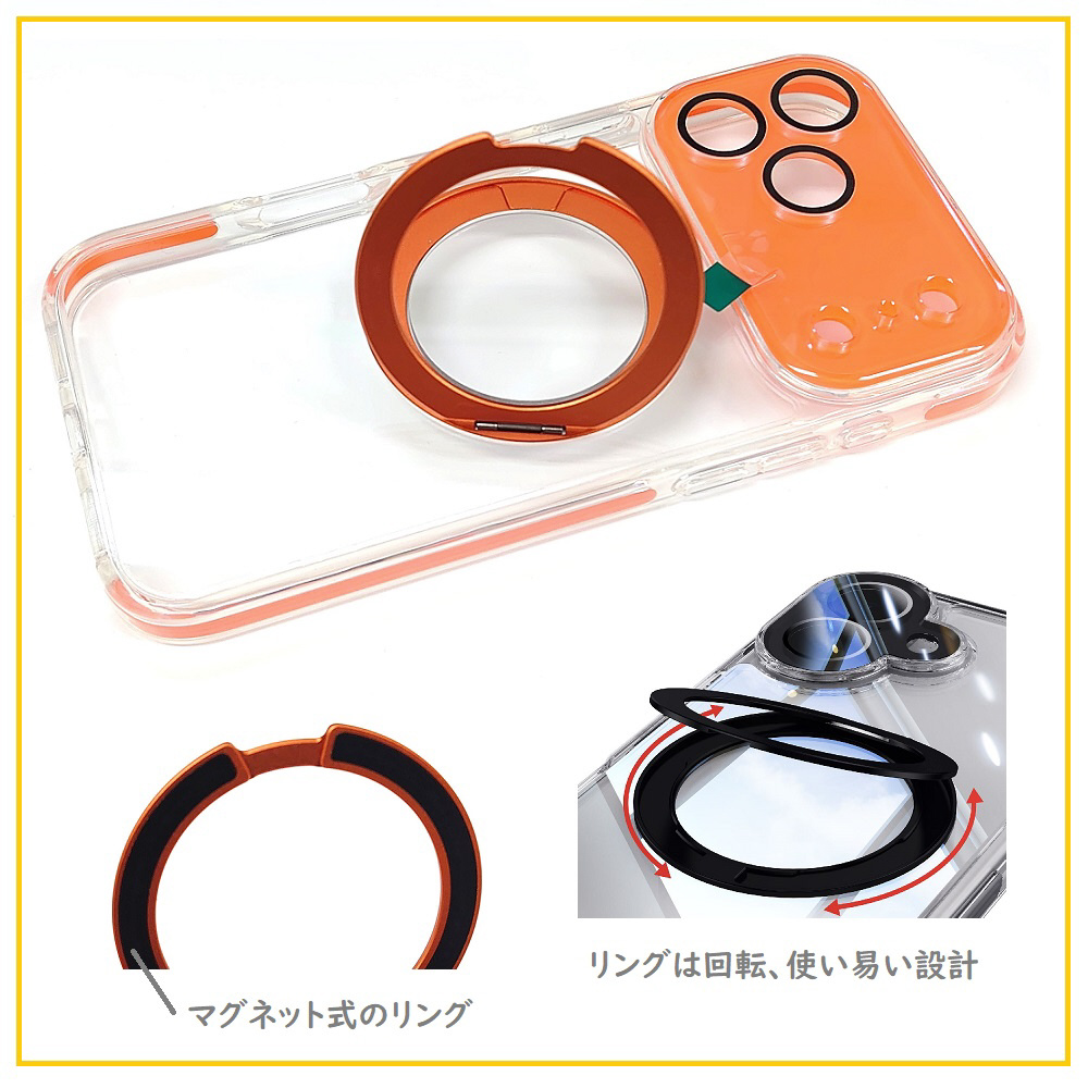 Magsafe対応のリングはアルミ素材を使いiPhone17Promax本体をお洒落に保護するケースです。