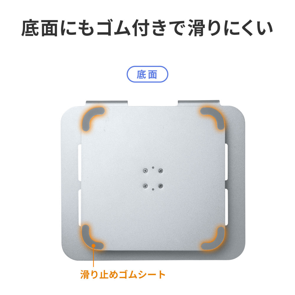 ■ノートパソコンと接する部分はシリコーンゴムシートにより、ノートパソコンに傷が付くのを防ぎます。