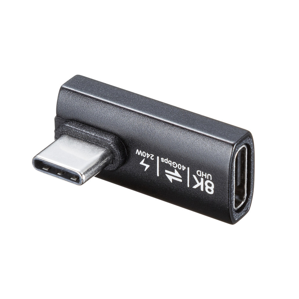 USB-C延長アダプタ [USB-C オス→メス USB-C /映像 /充電 /転送 /8K /PD240W /40Gbps] L型タテ挿し AD-USB36CCFLT