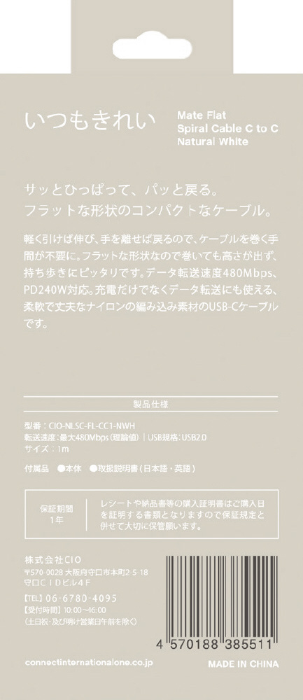 Mate Flat Spiral Cable CtoC 1m ナチュラルホワイト