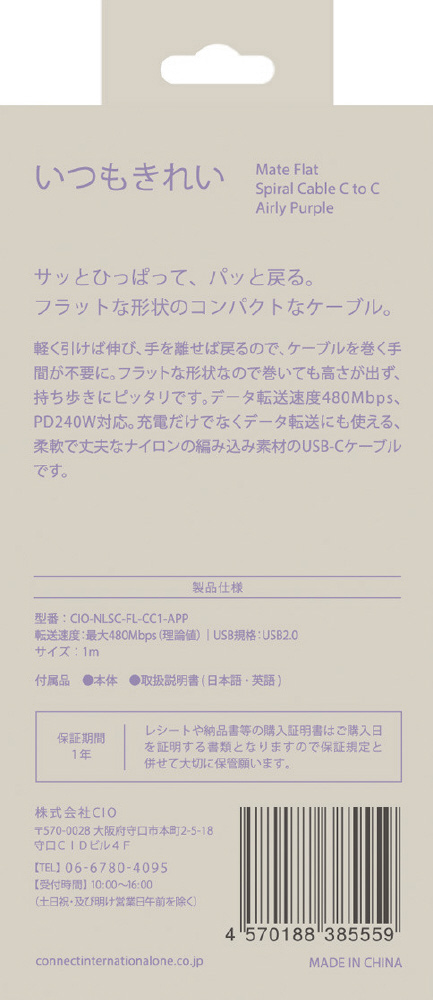 Mate Flat Spiral Cable CtoC 1m エアリーパープル