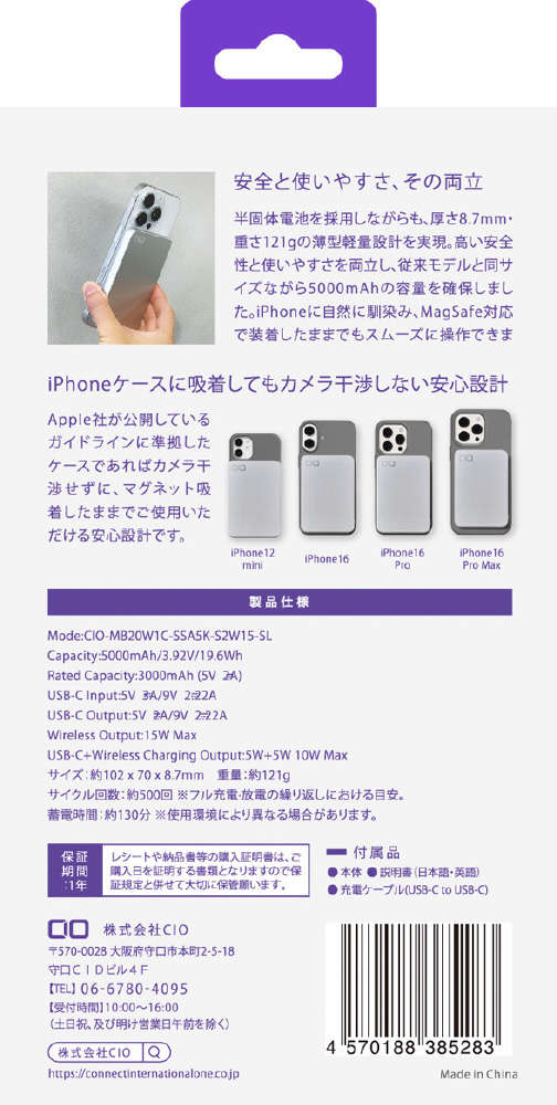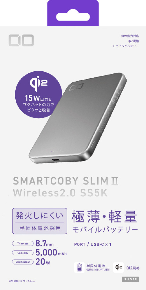 SMARTCOBY SLIMII Wireless2.0 SS5K シルバー CIO-MB20W1C-SSA5K-S2W15-SL [USB Power Delivery対応]