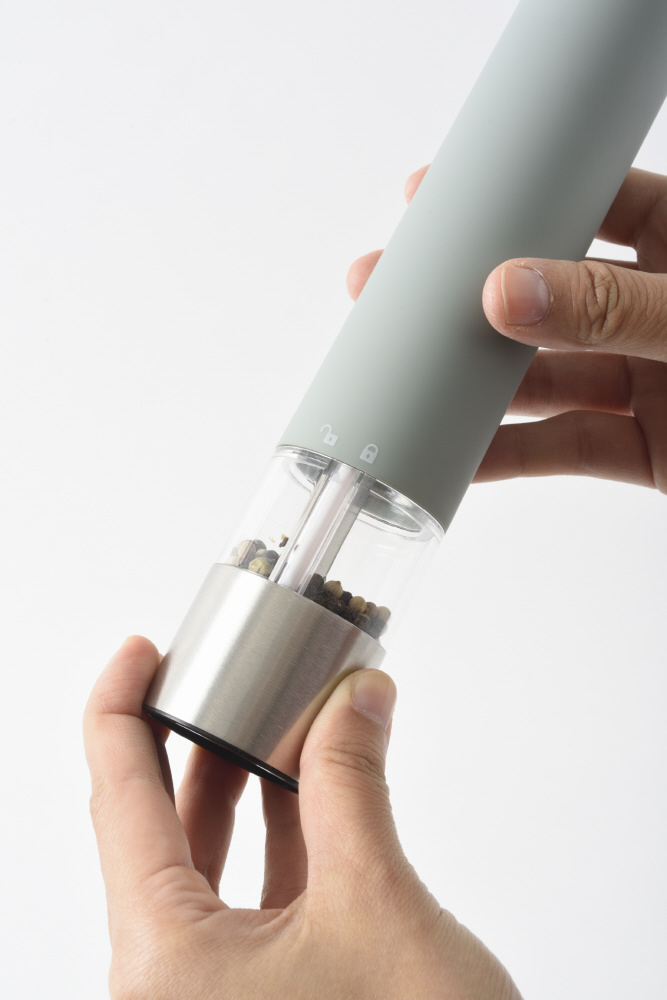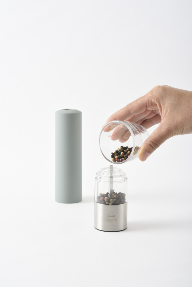 ■ボタンひとつの簡単操作で、調理中でも片手でスパイスが挽ける電動ミル。