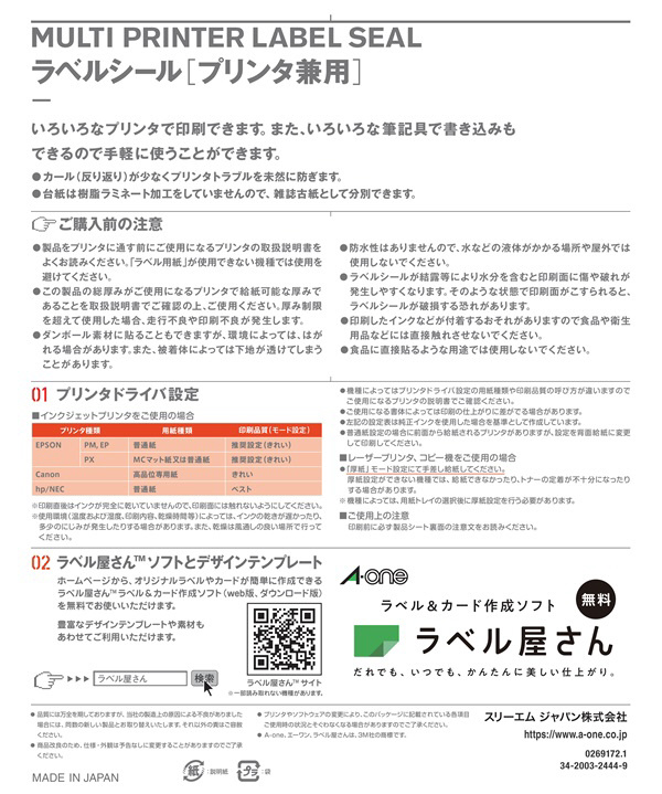 対応プリンタ インクジェット(染料・顔料)、レーザー、コピー、熱転写、ドット、手書き