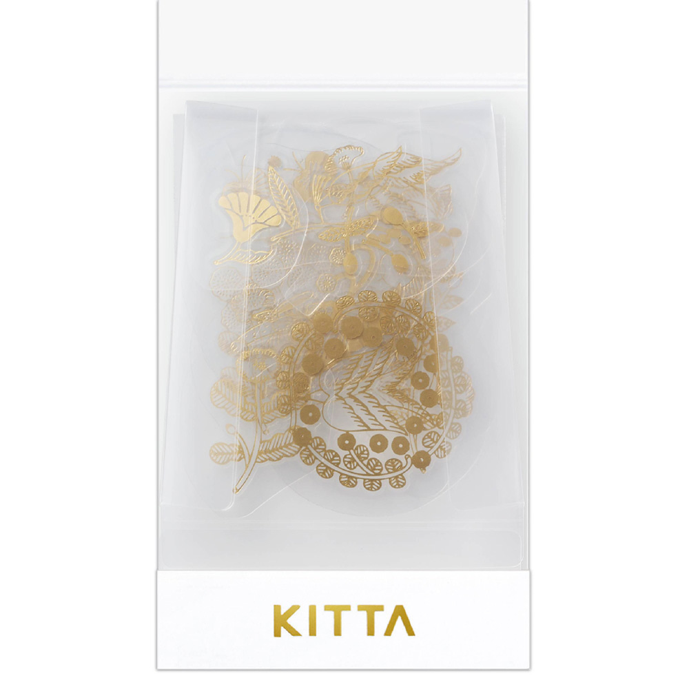 元から箔押しされているような仕上がりの転写シール。持ち運びがしやすい収納ケース付きです。