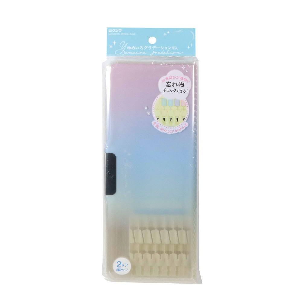 ふんわりかわいいゆめいろの筆入 鉛筆部分の中身が見えて芯先も確認できる ランドセルにぴったりサイズ 細め〜太め(7〜8mm)の鉛筆が入る鉛筆ホルダー(7本) 2ドアコンパクトタイプ 力が弱い低学年でも開け閉めしやすい