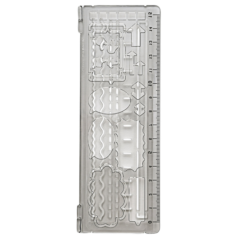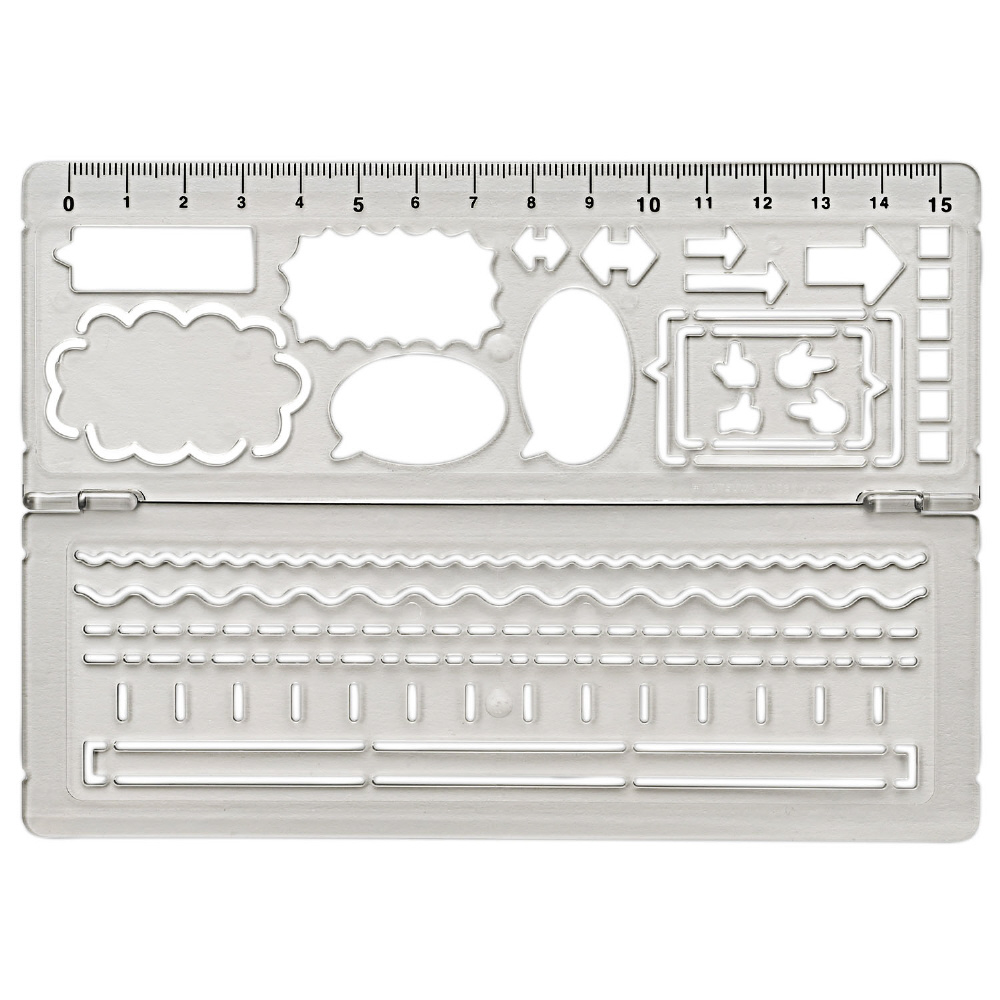 見やすいノートが作れるテンプレート 勉強用のノートを作る時に、吹き出し、矢印、枠線、チェックボックスがキレイに描ける ノート作りに役立つ図形が23種類描ける 図形が描きやすい色透明 折りたたんでコンパクトに携帯できる 15cmメモリ付