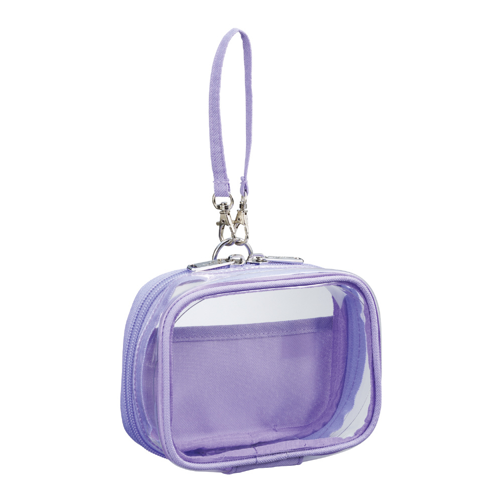●本体寸法:幅×奥行×高さ 140×50×105mm●本体重量:60g●材質:本体/ポリエステル・PVC、透明シート/PET●色:ライラックパープル