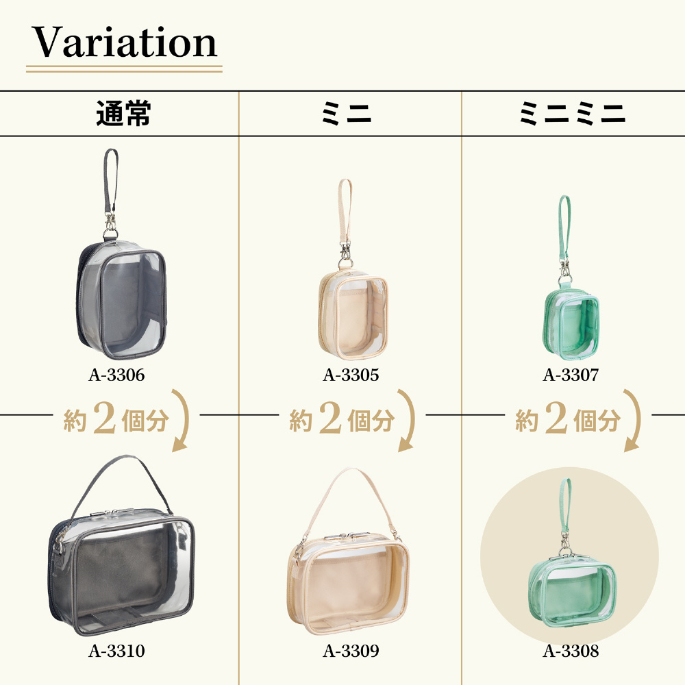デコレーションできる透明シート2枚付き(側面にセットできる帯状のものと背面ポケット用のカードシート).デコレーションしたシートを側面と背面ポケットにセットするとオリジナルデザインのポーチが作れます。別売りのアレンジショルダーベルト(A−3320)を付けるとショルダーバッグとしてもお使いいただけます。