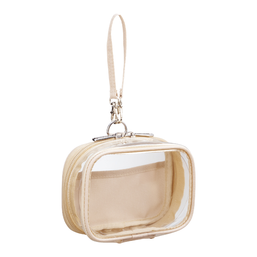 ●本体寸法:幅×奥行×高さ 140×50×105mm●本体重量:60g●材質:本体/ポリエステル・PVC、透明シート/PET●色:シフォンベージュ