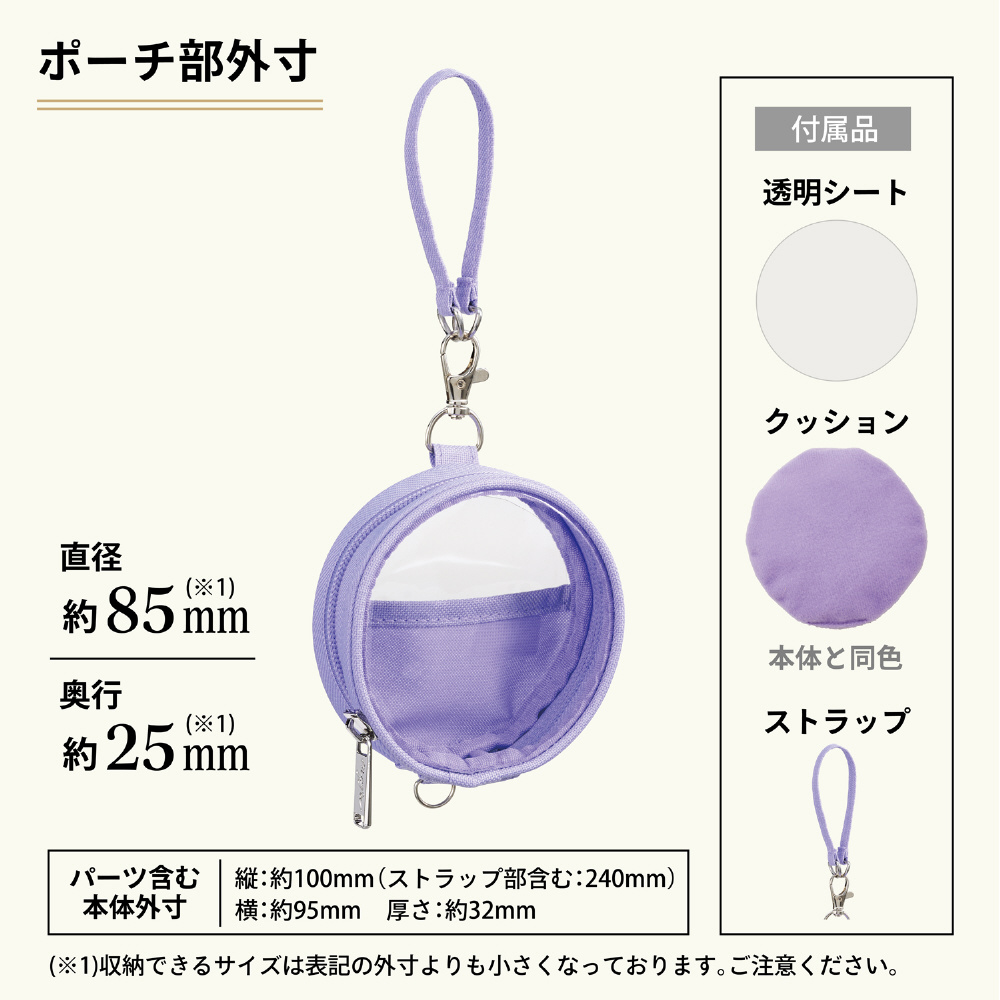 背面には缶バッジ(〜直径76mm)が入るポケット付き。カバー付きの缶バッジも収納できます。付属の透明シートでデコレーションできます。