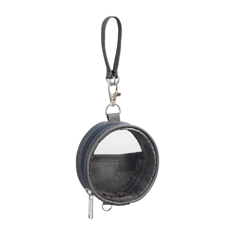カプセルトイや缶バッジを入れてオリジナルのポーチをつくれます。取り外し可能なストラップ付き。