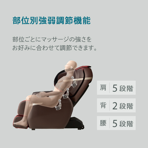 肩5段階、背2段階、腰5段階で幅広い強弱調節機能を搭載。