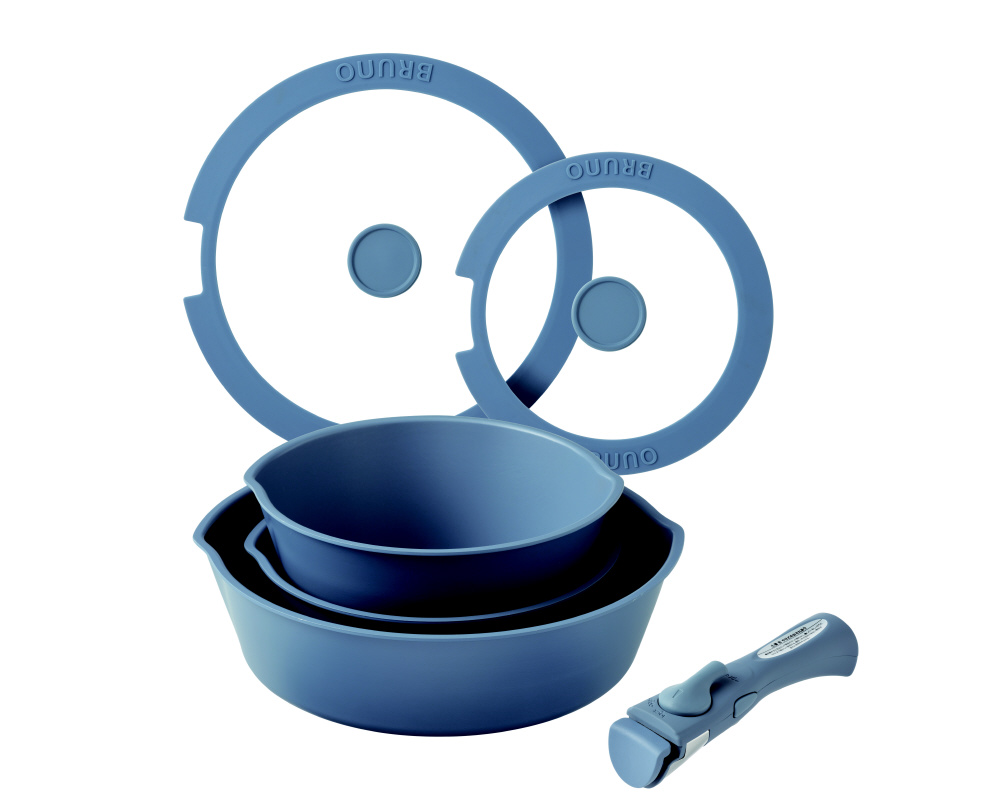 ■取っ手部分が取り外せるフライパンシリーズ。重ねてすっきり収納でき、冷蔵庫内での保存時も場所を取らずに便利。