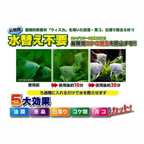 ●青コ・白濁り・油膜・悪臭の除去効果:30〜60分程度(効果は1回限り)