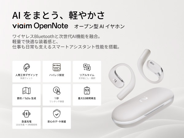 AIイヤホンレコーダー OpenNote-Gray グレー XFVI-E97 [Bluetooth対応 /ハイレゾ対応]