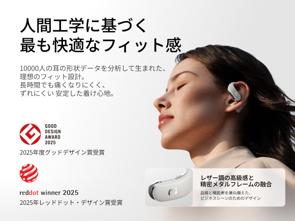 人間の耳介データモデルに基づいた再設計により、重量バランスを最適化。