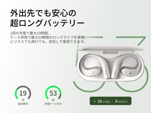 オープンイヤーデザインは、オフィスでの長時間使用はもちろん、スポーツをする時や観戦時でも、一日中快適さを実現します。