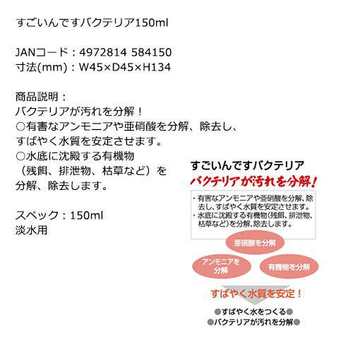 ●有害なアンモニアや亜硝酸を分解、除去し、すばやく水質を安定させます。